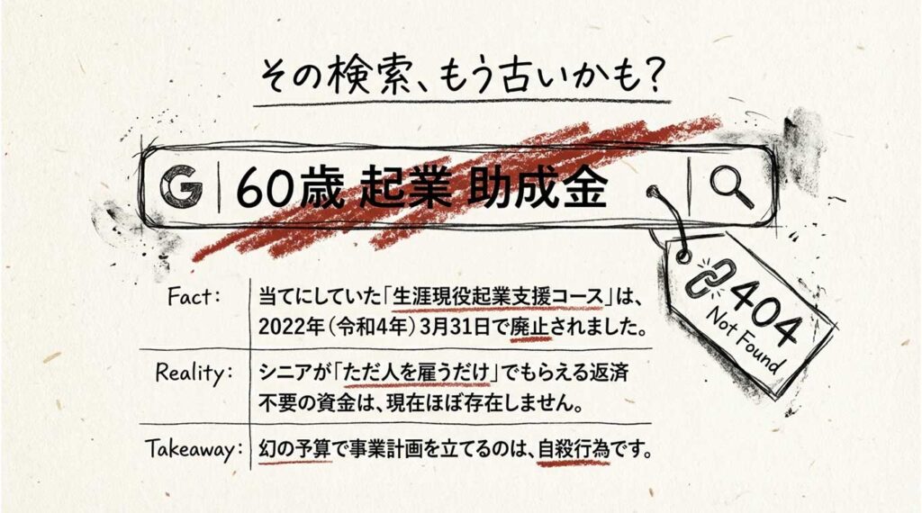 その「60歳 起業 助成金」、もう終わってる話だった