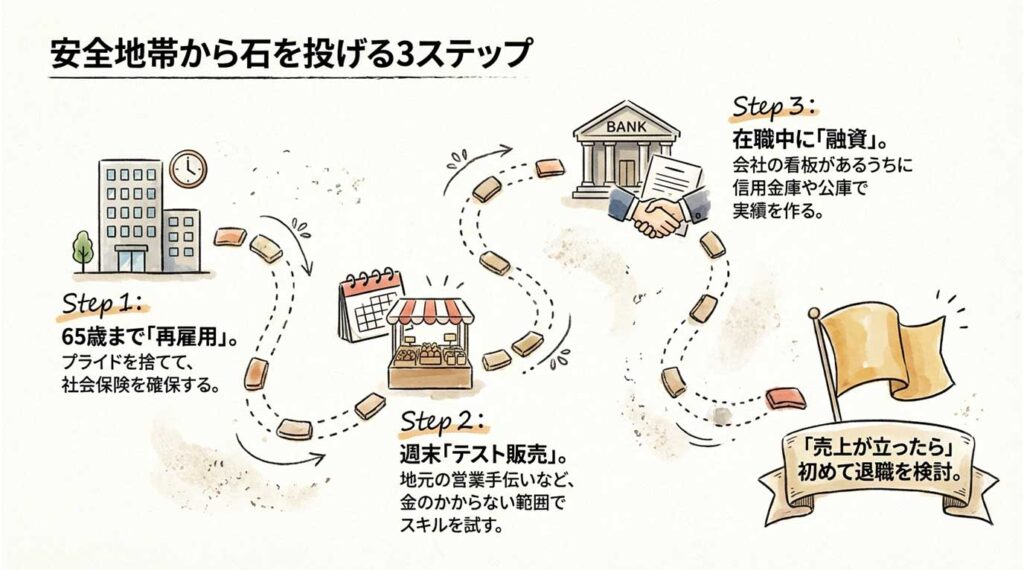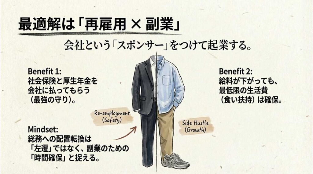 要は、再雇用で食い扶持を確保しながら副業で試すやり方だ。